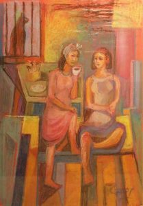 وتابع: هناك لوحات تجمع ثقافة الفن الحديث بمدارسه وإن غلب التأثر بالتكعيبية كاتجاه فني لفنان يعاصر ثقافة جيله من الفنانين بخصوصية وإتقان متميز في بناء اللوحة جماليات، بين التشخيص و التجريد والبناء، وهناك جانب آخر من أعماله في رسم البورتريهات والطبيعة ببراعة المبدعين الذين يملكون صنعة الأداء والتعبير.