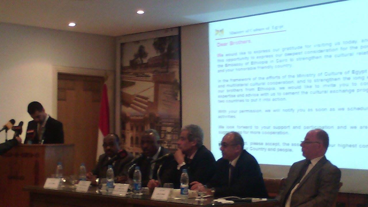استقبل المجلس الأعلى للثقافة الوفد الإثيوبي الزائر لمصر ، وذلك في إطار عدة فعاليات ثقافية ينظمها قطاع العلاقات الثقافية بوزارة الثقافة للاحتفاء بهم حيث وصل الوفد في تمام الواحدة ظهرا وفور وصوله أمام المجلس الأعلى للثقافة استقبلتهم فرقة أسوان للفنون الشعبية بفقرة فنية صاحبة الوفد منذ وصوله الأوبرا مرورا بمركز الهناجر وحتى مبنى المجلس الأعلى للثقافة وعقب ذلك عقد لقاء بين الوفد وكوكبة من المثقفين المصريين وبدأ بترحيب الدكتور محمد عفيفي أمين عام المجلس الأعلى للثقافة بالسيد أبادولاحميدا رئيس البرلمان الإثيوبي والوفد المصاحب له وعبر عن سعادته بتواجدهم في بيت المثقفين الكبير الذي يضم جميع التيارات الثقافية التي تمثل عقل مصر وأكد خلال كلمته أن الثقافة هي خير رسول للتواصل بين البلاد وعن طريقها نستطيع إزالة جميع الخلافات السياسية ,ومن ثم استعرض سيادته الفعاليات الثقافية التي نظمتها وزارة الثقافة للاحتفاء بالوفد والتى شملت زيارة الوفد للأزهر الشريف والكنيسة وشاهدوا بعض العروض الفنية بدار الأوبرا المصرية كما نسق لهم قطاع الفنون التشكيلية زيارة لمتحف الفن الحديث وشاهدوا مراحل تطويره وكما قدمت لهم فرقة أسوان للفنون الشعبية التابعة لقصور الثقافة عرضا مرتبطا بوادي النيل والقارة الإفريقية و ستختتم الفعاليات بحفل ينظمه صندوق التنمية الثقافية بقبة الغوري يشمل رسالة سلام للفنان انتصار عبد الفتاح يمزج فيه بين التراتيل الكنسية والإنشاد الصوفي واختتم كلمته قائلا مرحبا بكم فى مصر بلد الحضارة والثقافة, وتلاها كلمة للسيد أبادولاحميدا رئيس البرلمان الإثيوبي والذي أكد فيها عن بالغ سعادته لزيارته لمصر وشعوره بالامتنان لوزارة الثقافة على الاحتفاء البالغ الذي بدا من تنظيم الفعاليات الثقافية المتنوعة التي تعبر عن ثراء الثقافة المصرية العظيمة , ثم فتح باب الناقش بين السادة الحضور والوفد الإثيوبي .