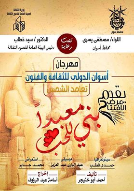 تجرى الان على مسرح فوزى فوزى (المسرح الصيفي) بأسوان بروفات مسرحية “بنى للحب معبداً” استعدادا لحفل افتتاح مهرجان أسوان الدولي للثقافة و الفنون( تعامد الشمس) يوم 17 فبراير الجاري الذى تنظمه الهيئة العامة لقصور الثقافة برئاسة د. سيد خطاب العرض ديكور و ازياء حمدي قطب استعراضات محمد جابر إعداد موسيقى عبد الباري عبد العزيز إضاءة مايكل يعقوب مساعد مخرج موسى محمد تأليف أحمد أبو خنيجر، و أخراج أسامة عبد الرؤوف و بطولة فرقة أسوان القومية و يستمر العرض لثلاث ليال متتالية.