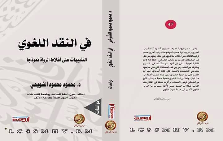 أصدرت مؤسسة “أروقة “للدراسات والترجمة والنشر بالتعاون مع نادي نجران الأدبي الثقافي ، كتاب ” في النقد اللغوي ؛ التنبيهات علي أغلاط الرواة نموذجا ”  للدكتور محمود محمود الشويحي أستاذ أصول اللغة المساعد بجامعة الملك خالد ومدرس أصول اللغة بجامعة الأزهر .