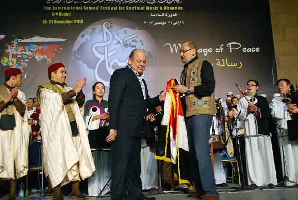 أكد د. صابر أن الثقافة الوجدانية الروحية الصوفية راسخة في شعوب الشرق عموما بين المسلمين والمسيحيين ,وتبين ان كل العقائد والمعتقدات والثقافات بينهم ثقافة وموسيقي روحية ، والموسيقي لغة عالمية يفهمها كل من له قدر من الشعور والاحساس ، فثقافة اذربيجان من اسيا الوسطي وصولا الي ثقافة تركيا وأ وروبا الشرقية ,كل هذه الثقافات لها علاقة وثيقة بالموسيقي الصوفية , هناك علاقة مشتركة بين الموسيقي والثقافة الصوفية فى كل دول العالم وحتي دول اوروبا ، وهي لغة جديدة تجمع الناس بالرغم من الاختلاف في السياسة ,لكن في النهاية الناس يجمعون علي هذا النوع الجميل الراقي من الموسيقي الصوفية ، وأشار بأننا استمتعنا وسنتمتع لمدة أسبوع بالفرق الفنية وخصوصا في هذه المرحلة من تاريخ مصر الذي يؤكد ان مصر قادمة علي مرحلة جديدة من استعادة روحها وانسانيتها لأن الموسيقي لغة ، ونحن نعبر مرحلة الي مرحلة جديدة ستتجاوز مصر كل مشاكلها ، والمصريون سيستعيدون كل أمالهم وطموحاتهم في الفترة القادمة ، وقدم صابر الشكر للدول التى شاركت فى إقامة هذا الرس الفنى الرائع , لأنهم أصحاب الفضل في نجاح هذه الدورة والدورات السابقة ,وهذه التجربة الهامه من انشطة وزارة الثقافة مع وزارة السياحة , ان العام القادم سوف يزداد نجاحا مؤكدا ان الموسيقي الصوفية هي روح الشعوب خصوصا في عالمنا العربي وفى الشرق عموما,وهذه تجربة هامه وفريدة تألقت في سماء القاهرة خلال الثلاث سنوات الماضية وكانت القاهرة تموج بحركة وطنية ثورية فكان مهرجان سماع يتجول في اماكن عديدة من القلغة الي الغوري وحتي في الأقاليم من دمنهور الى الاسكندرية ,وفى النهاية قدم الشكر للذين دعموا هذا المهرجان وخصوصا الفنان انتصار عبد الفتاح .أعقب ذلك قيام د.صابر والفنان انتصار بتكريم عدد من الشخصيات المصرية والدولية البارزة وذلك بإهدائهم درع المهرجان وهم د.تسايوو وتسلمه