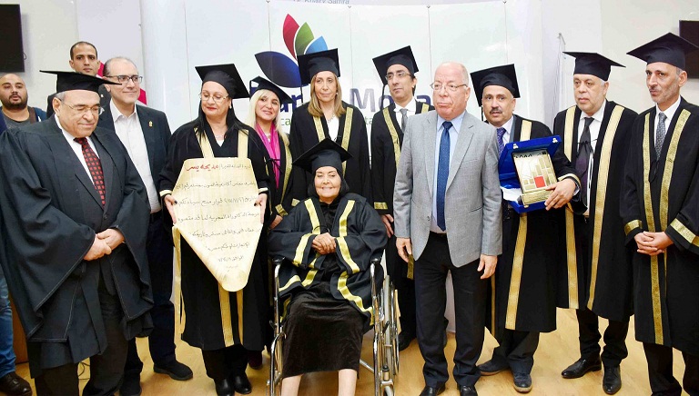 ولذلك أقر مجلس أكاديمية الفنون ، برئاسة الدكتورة أحلام يونس ، الدكتور عادل يحيي نائب رئيس الأكاديمية ، الدكتور أشرف زكي عميد المعهد العالي للفنون المسرحية، الدكتوره لمياء زايد،عميد المعهد العالي للباليه. الدكتور مصطفي جرانه، عميد المعهد العالي للكونسرفتوار، الدكتوره نيفين الكيلاني،،وكيل المعهد العالي للنقد الفني، الدكتور محسن التوني عميد المعهد العالي للسينما، مصطفي الفقي عضو مجلس الاكاديمية. محمود صبري الشبراوي عضو مجلس الأكاديمية. بجلسته المنعقدة رقم 342 منحها درجة الدكتوراه الفخرية” تقديرا لمشوارهما الفني ، حضر الحفل كوكبة من الفنانين والإعلاميين منهم الفنانه سميحه ايوب ، مرفت أمين ،انوشكا، الهام شاهين ، ليلي علوي ،ساندرا نشأت ،دلال عبد العزيز، سمير صبري، رجاء الجداوي ، وائل الابراشي ، سامح الصريطي ، رامي راضون ، الأب بطرس دانيال رئيس المركز الكاثوليكي للسينما ، الشاعر جمال بخيت،هاني البحيري،ايمن عزب،حسن الرداد، ايمي سمير غانم.