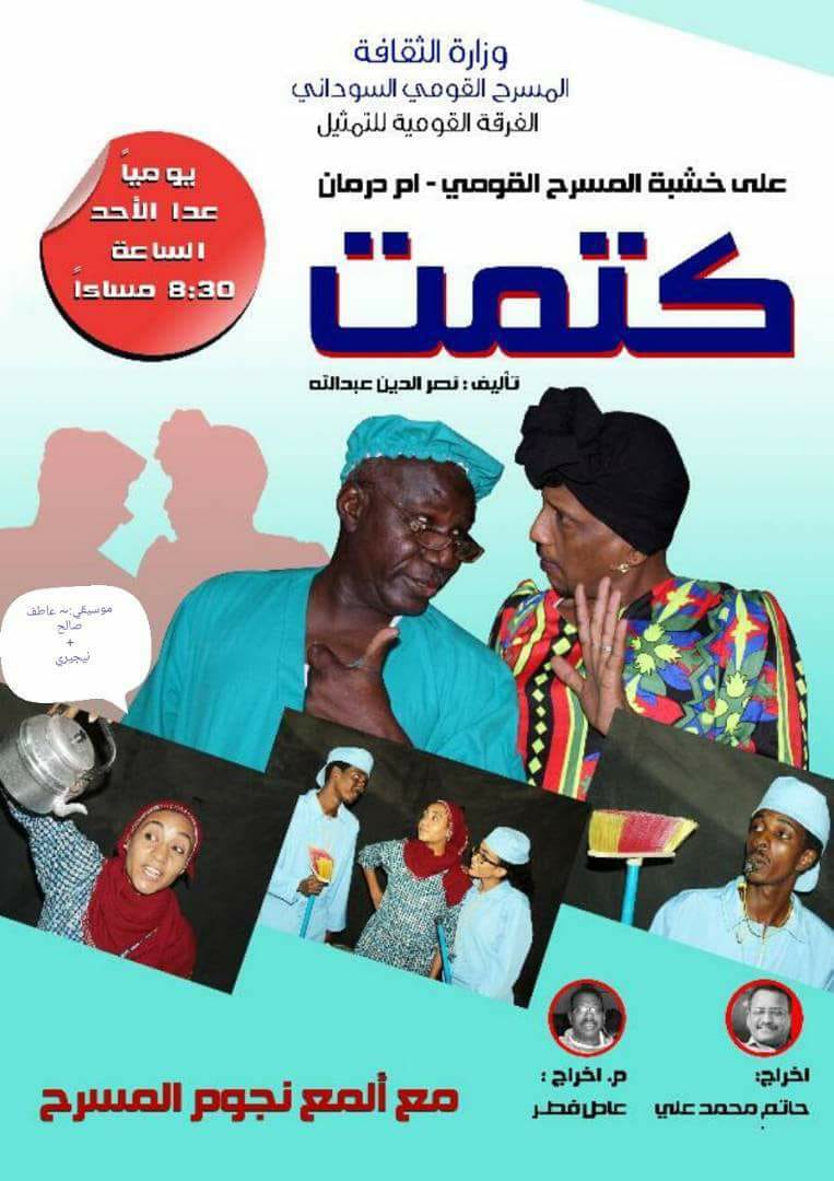 تصل صباح السبت المقبل فرقة المسرح القومى السودانى ، لتعرض أحدث عروضها ” كتمت ” على خشبة المسرح القومى فى مصر ضمن فعاليات المهرجان القومى للمسرح المصرى ، و فى إطار توثيق العلاقات الثقافية بين البلدين ، وتحقيق توأمة بين المسرحين الكبيرين فى البلدين .