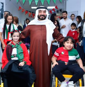 احتفل مركز راشد لأصحاب الهمم باليوم الوطني الثامن والأربعين بحضور لفيف من الشخصيات العامة ونجوم الفن والإعلام وأهالي الطلبة، حيث تفاعل الحضور مع الفقرات التراثية والوطنية واليولة والأغنيات الوطنية، كما أقام الطلبة وبالتعاون مع جهات متعددة، خيماً تراثية وفولكلورية تتضمن الأطباق الشعبية والحناء.