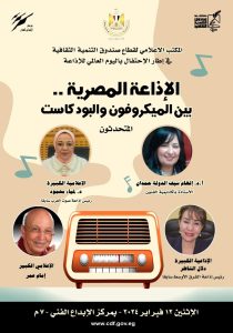 تأتي الاحتفالية- والتي يشرف على تنظيمها المكتب الاعلامي للصندوق- في إطار الاحتفال باليوم العالمي للإذاعة، ويشارك بها الأستاذة الدكتورة إلهام سيف الدولة حمدان الأستاذة بأكاديمية الفنون، والإعلامية الدكتورة لمياء محمود رئيس إذاعة صوت العرب سابقاً، والإذاعية الكبيرة دلال الشاطر رئيس إذاعة الشرق الأوسط سابقاً، والإعلامي الكبير إمام عمر.