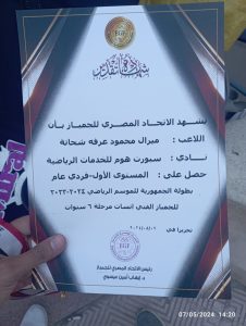 حصلت لاعبة الجمباز : ميرال محمود عرفة شحاتة لاعبة نادي سبورت هوم للخدمات الرياضية على المستوى الأول . فردي عام من الاتحاد المصري للجمباز عن بطولة الجمهورية للموسم الرياضي ٢٠٢٣ / ٢٠٢٤ .
